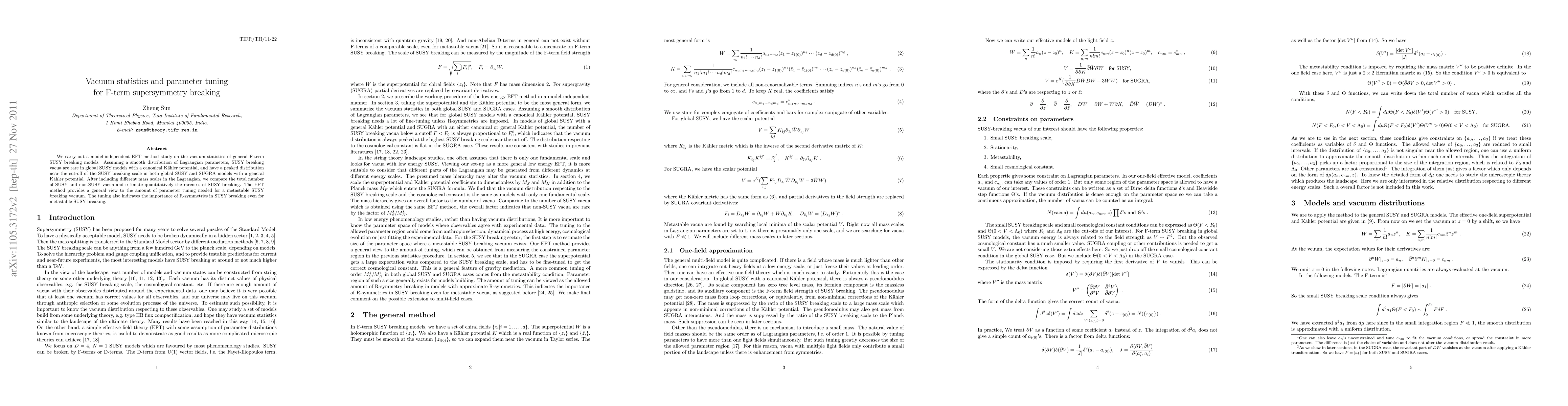 This paper uses an effective field theory (EFT) approach to study vacuum statistics in F-term supersymmetry breaking models, finding that SUSY breaking vacua are rare and require significant parameter tuning. The study highlights the importance of R-symmetries in achieving metastable SUSY breaking.