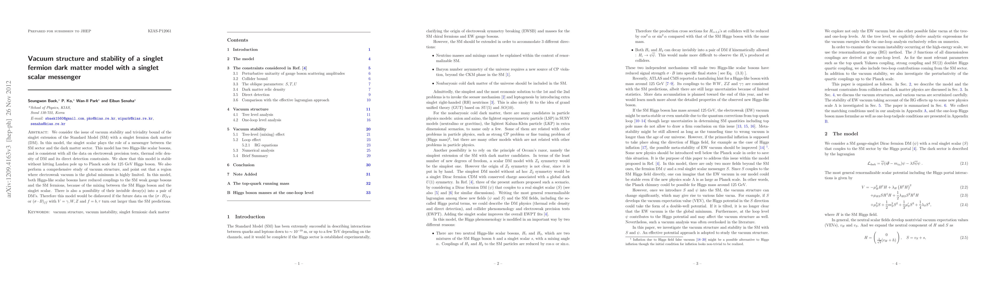 This paper investigates the vacuum stability and triviality of a singlet fermion dark matter model with a singlet scalar messenger, showing it remains stable up to the Planck scale. It also finds limited regions where the electroweak vacuum is the global minimum, and suggests future data on specific decay rates could disfavor the model.