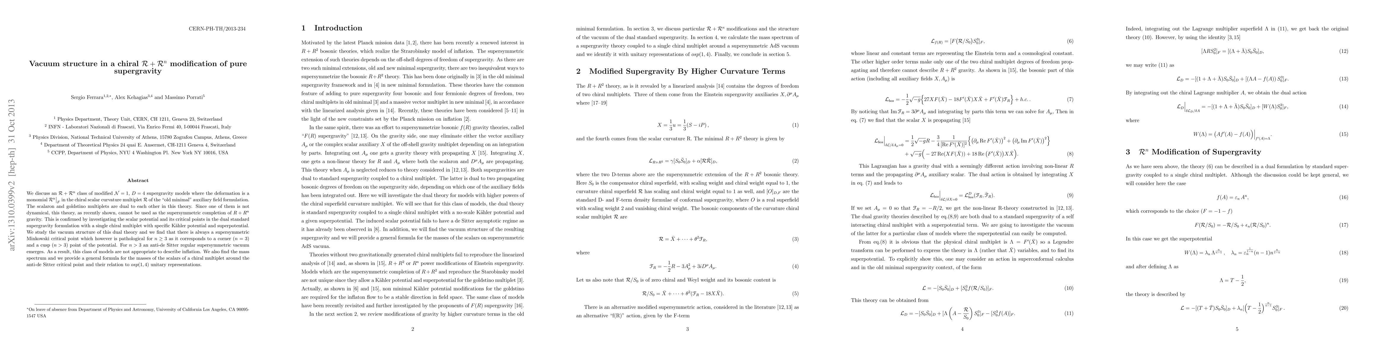 This paper investigates the vacuum structure of ${\cal N}=1$, D=4 supergravity models modified by ${\cal R}+{\cal R}^n$ terms, finding a supersymmetric Minkowski critical point that is problematic for $n\geq 3$. For $n>3$, an anti-de Sitter vacuum emerges, indicating these models are unsuitable for describing inflation.