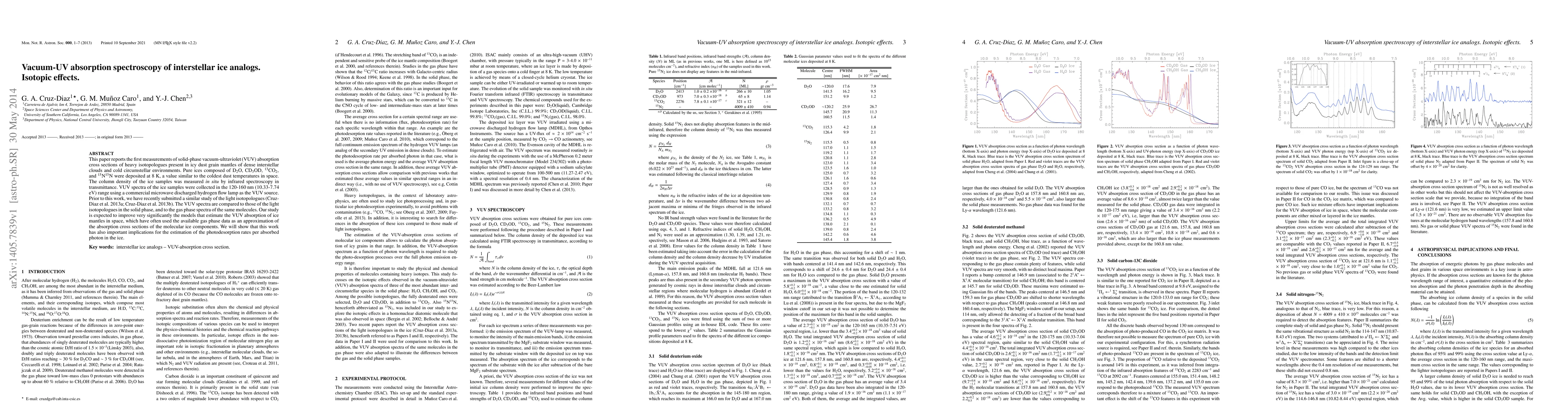 This paper presents the first measurements of vacuum-UV absorption cross-sections of heavy isotopologues in interstellar ice analogues, including D2O, CD3OD, 13CO2, and 15N15N. These findings improve models for estimating VUV absorption in space and have significant implications for photodesorption rates.
