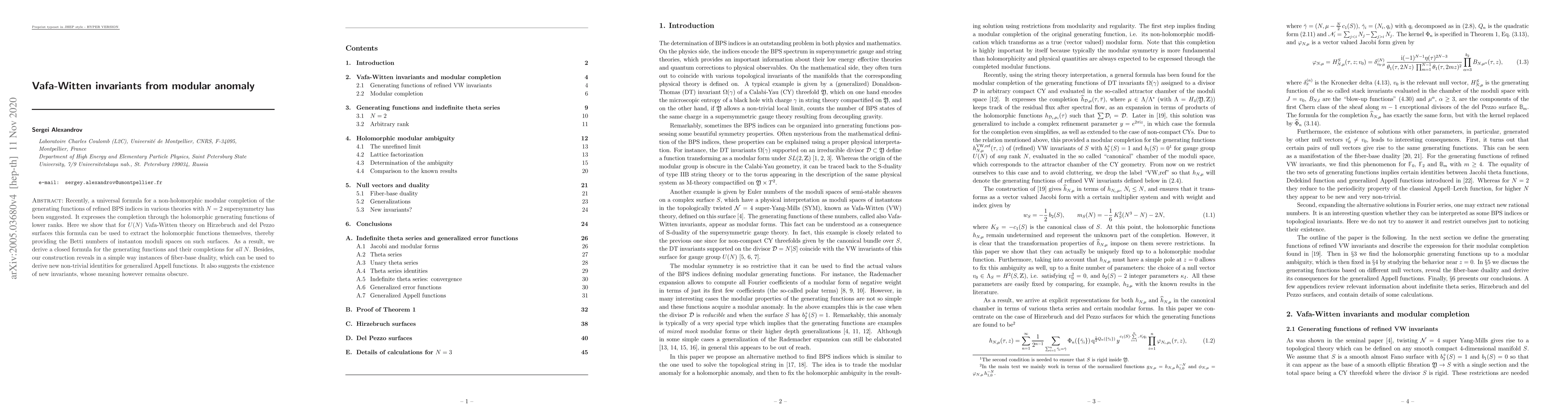 Researchers derive a closed formula for generating functions of $N=2$ supersymmetric theories on Hirzebruch and del Pezzo surfaces using modular anomaly completion, providing insight into instanton moduli spaces and new invariants.