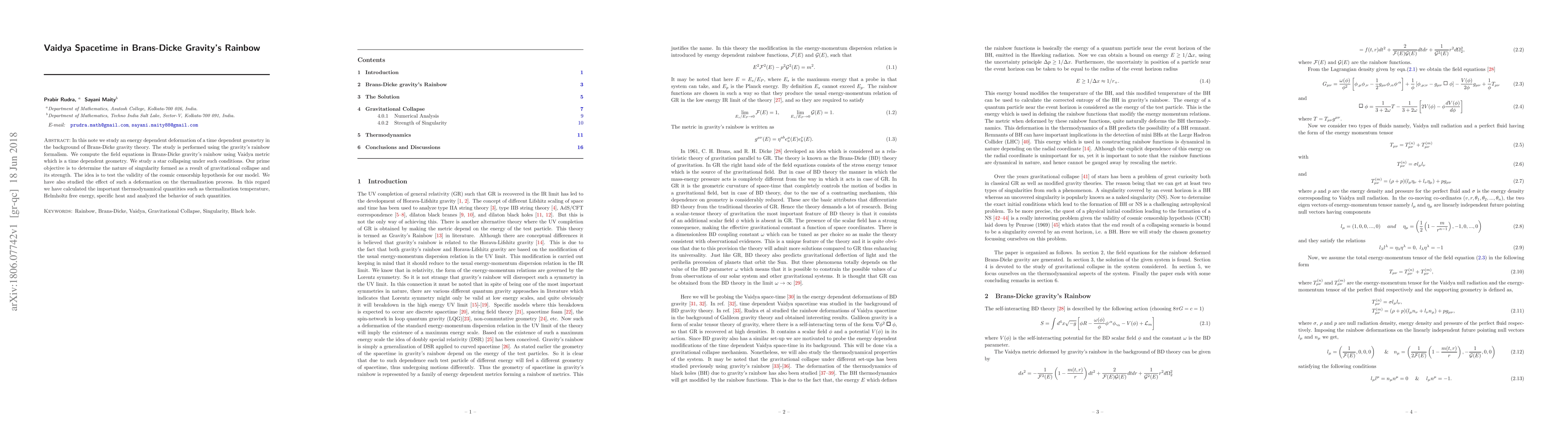 In this note we study an energy dependent deformation of a time dependent geometry in the background of Brans-Dicke gravity theory. The study is performed using the gravity's rainbow formalism. We compute the field equations in Brans-Dicke gravity's rainbow using Vaidya metric which is a time dependent geometry. We study a star collapsing under such conditions. Our prime objective is to determine the nature of singularity formed as a result of gravitational collapse and its strength. The idea is to test the validity of the cosmic censorship hypothesis for our model. We have also studied the effect of such a deformation on the thermalization process. In this regard we have calculated the important thermodynamical quantities such as thermalization temperature, Helmholtz free energy, specific heat and analyzed the behavior of such quantities.