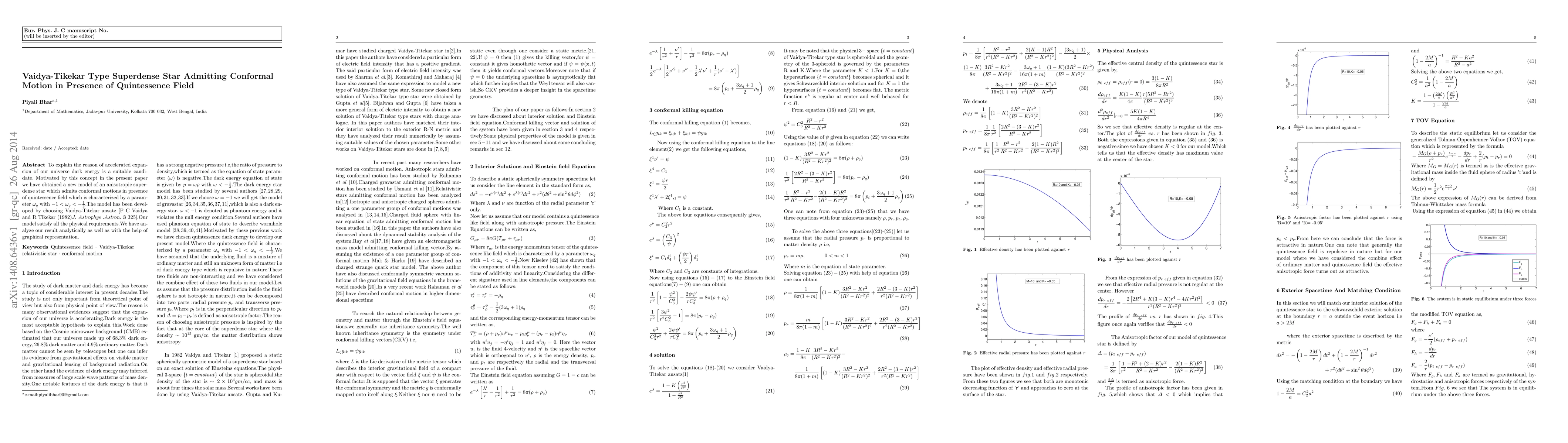 Researchers developed a new model of superdense star that can move in a specific way when surrounded by a mysterious energy field called quintessence, with potential implications for understanding the universe's accelerating expansion.