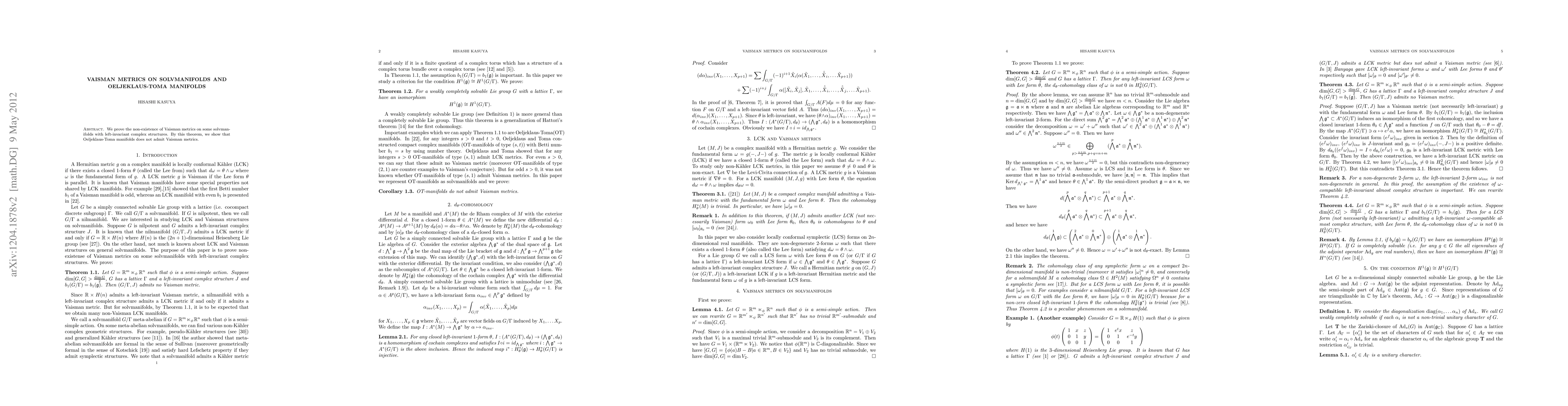 This paper demonstrates that certain solvmanifolds with left-invariant complex structures lack Vaisman metrics. Consequently, it concludes that Oeljeklaus-Toma manifolds cannot support Vaisman metrics either.