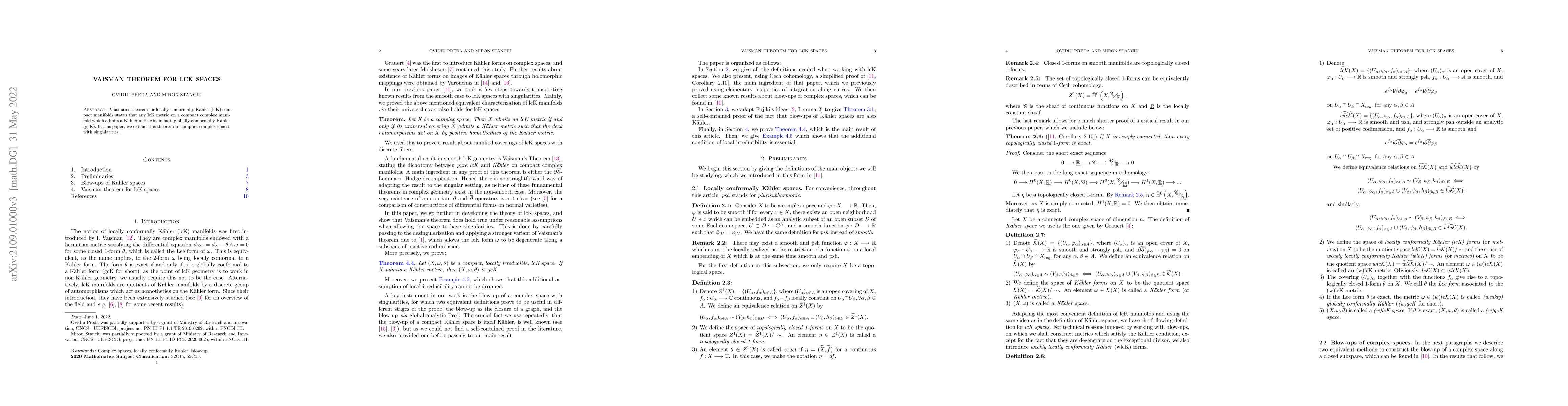 This paper extends Vaisman's theorem for locally conformally Kähler (lcK) compact manifolds to compact complex spaces with singularities, proving that any lcK metric on such spaces that can accommodate a Kähler metric is globally conformally Kähler (gcK).