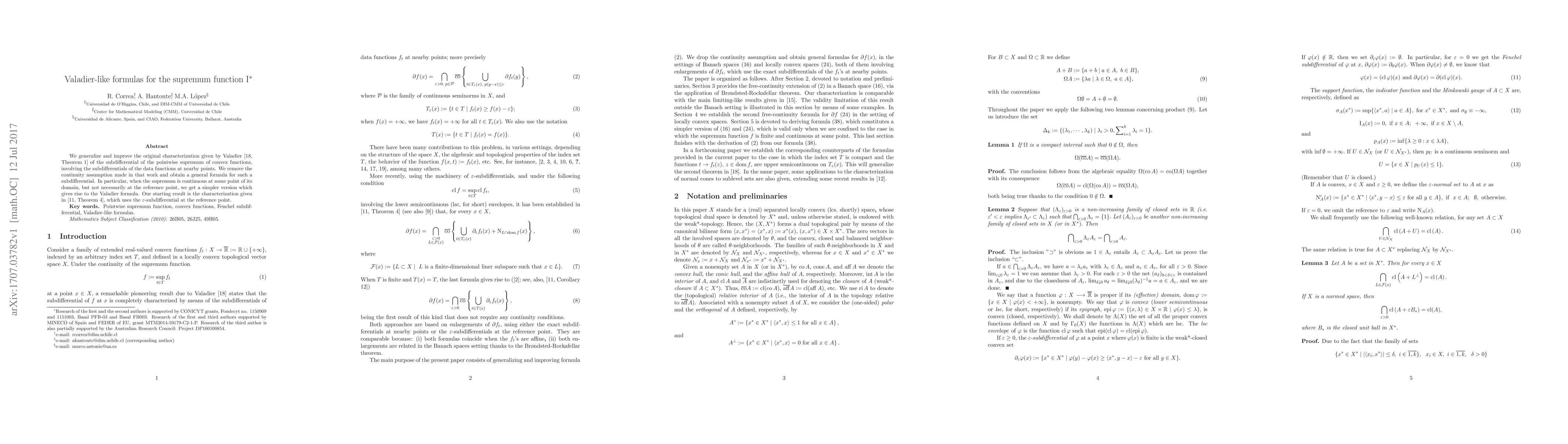 We generalize and improve the original characterization given by Valadier [18, Theorem 1] of the subdifferential of the pointwise supremum of convex functions, involving the subdifferentials of the data functions at nearby points. We remove the continuity assumption made in that work and obtain a general formula for such a subdiferential. In particular, when the supremum is continuous at some point of its domain, but not necessarily at the reference point, we get a simpler version which gives rise to the Valadier formula. Our starting result is the characterization given in [11, Theorem 4], which uses the epsilon-subdifferential at the reference point.