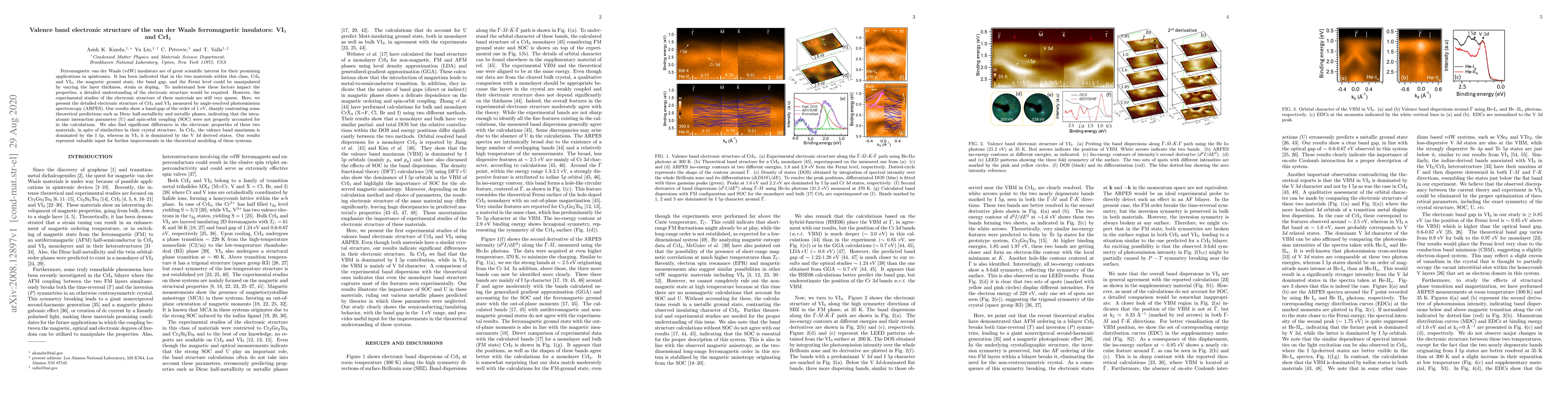 This paper presents detailed electronic structure measurements of the van der Waals ferromagnetic insulators CrI$_3$ and VI$_3$ using angle-resolved photoemission spectroscopy (ARPES). It reveals a 1 eV band gap and highlights significant differences in the valence band compositions, suggesting that theoretical models need to better account for intra-atomic interactions and spin-orbit coupling.