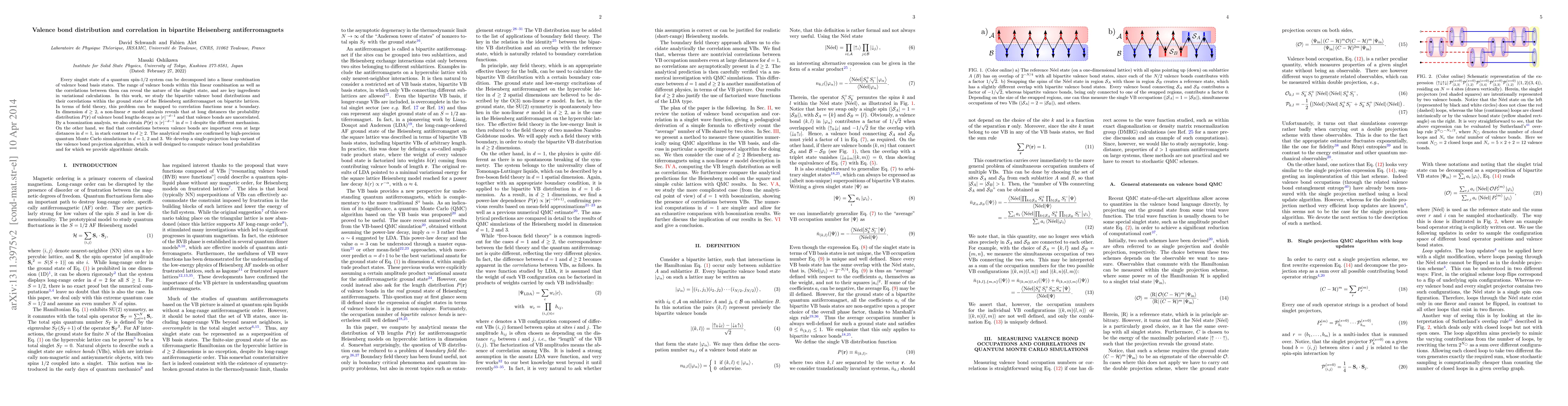 Every singlet state of a quantum spin 1/2 system can be decomposed into a linear combination of valence bond basis states. The range of valence bonds within this linear combination as well as the correlations between them can reveal the nature of the singlet state, and are key ingredients in variational calculations. In this work, we study the bipartite valence bond distributions and their correlations within the ground state of the Heisenberg antiferromagnet on bipartite lattices. In terms of field theory, this problem can be mapped to correlation functions near a boundary. In dimension d >= 2, a non-linear sigma model analysis reveals that at long distances the probability distribution P(r) of valence bond lengths decays as |r|^(-d-1) and that valence bonds are uncorrelated. By a bosonization analysis, we also obtain P(r) proportional to |r|^(-d-1) in d=1 despite the different mechanism. On the other hand, we find that correlations between valence bonds are important even at large distances in d=1, in stark contrast to d >= 2. The analytical results are confirmed by high-precision quantum Monte Carlo simulations in d=1, 2, and 3. We develop a single-projection loop variant of the valence bond projection algorithm, which is well-designed to compute valence bond probabilities and for which we provide algorithmic details.