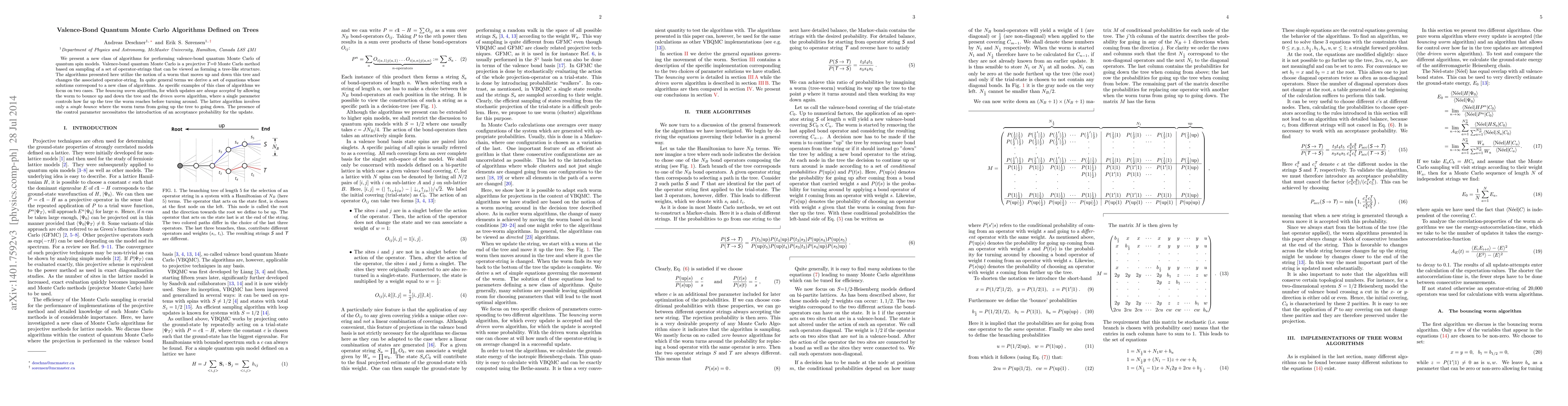 This paper introduces new valence-bond quantum Monte Carlo algorithms for quantum spin models, utilizing a "worm" that navigates a tree-like structure of operator-strings. The two specific algorithms discussed are the bouncing worm and driven worm, with the latter incorporating an acceptance probability for updates.
