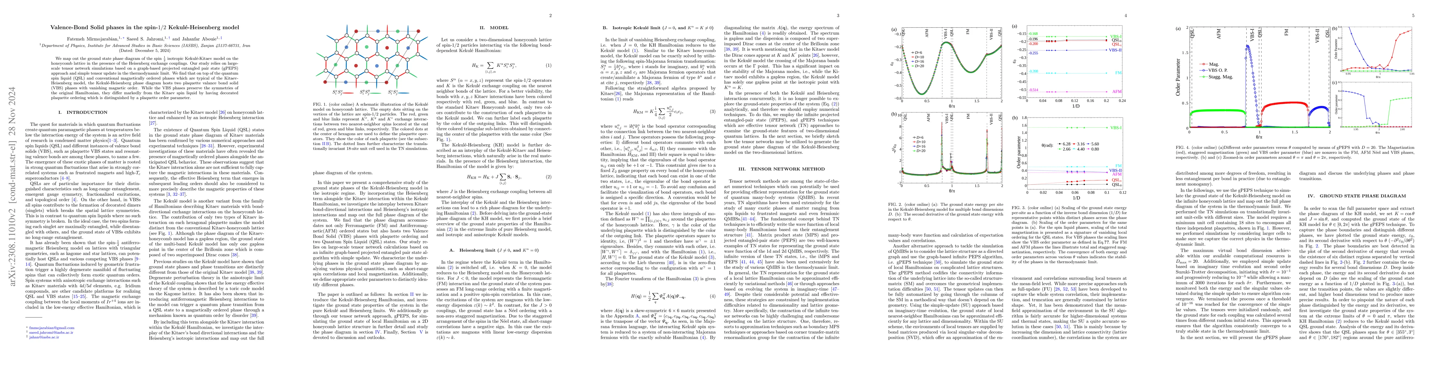 We map out the ground state phase diagram of the isotropic Kekul{\'e}-Kitaev model on the honeycomb lattice in the presence of the Heisenberg exchange couplings. Our study relies on large-scale tensor network simulations based on graph-based projected entangled pair state (gPEPS) approach in the thermodynamic limit. We find that on top of the quantum spin liquid (QSL) and conventional magnetically ordered phases which are typical of the Kitaev-Heisenberg model, the Kekul{\'e}-Heisenberg phase diagram, hosts two plaquette valance bond solid (VBS) phases with vanishing magnetic order. While the VBS phases preserve the symmetries of the original Hamiltonian, they differ markedly from the Kitaev spin liquid by having decorated plaquette ordering which is distinguished by a plaquette order parameter.