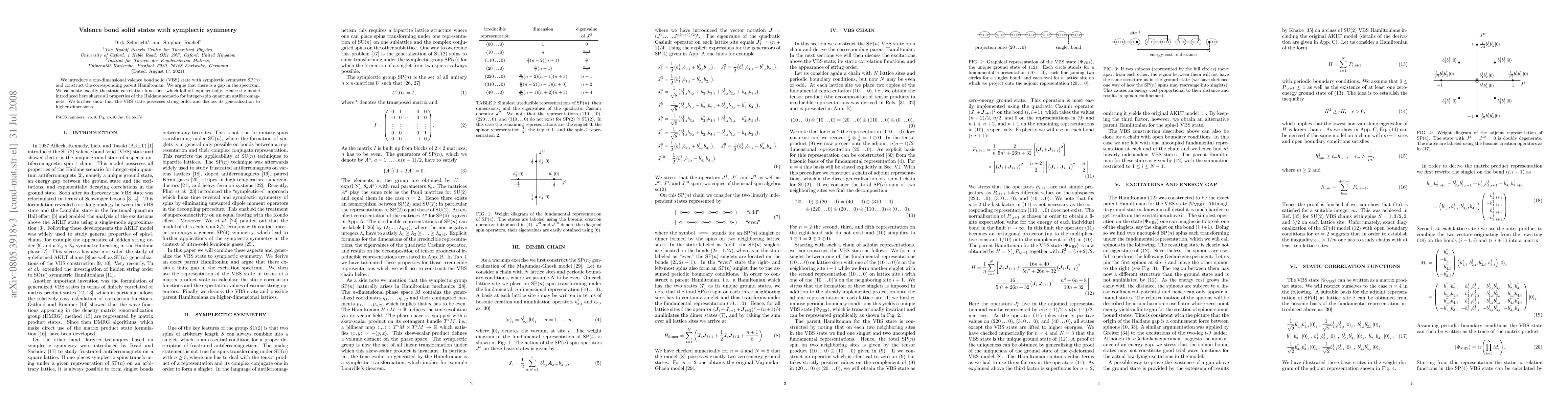 This paper introduces a one-dimensional valence bond solid state with symplectic symmetry SP(n) and constructs its parent Hamiltonian, demonstrating a gap in the spectrum and exponential decay of static correlation functions, akin to the Haldane scenario. The VBS state also exhibits string order and potential for generalization to higher dimensions.