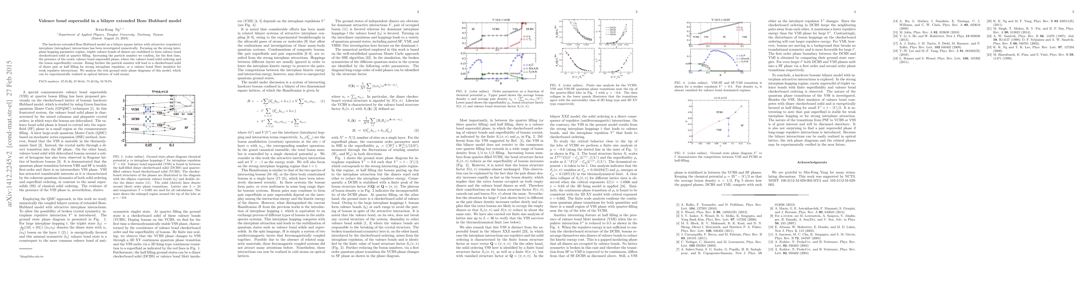 This paper investigates a bilayer extended Bose Hubbard model, revealing the existence of a valence bond supersolid phase where both valence bond solid order and boson superfluidity coexist. The study numerically confirms this exotic phase for increased particle numbers, alongside other phases like the checkerboard solid and valence bond Mott insulator.