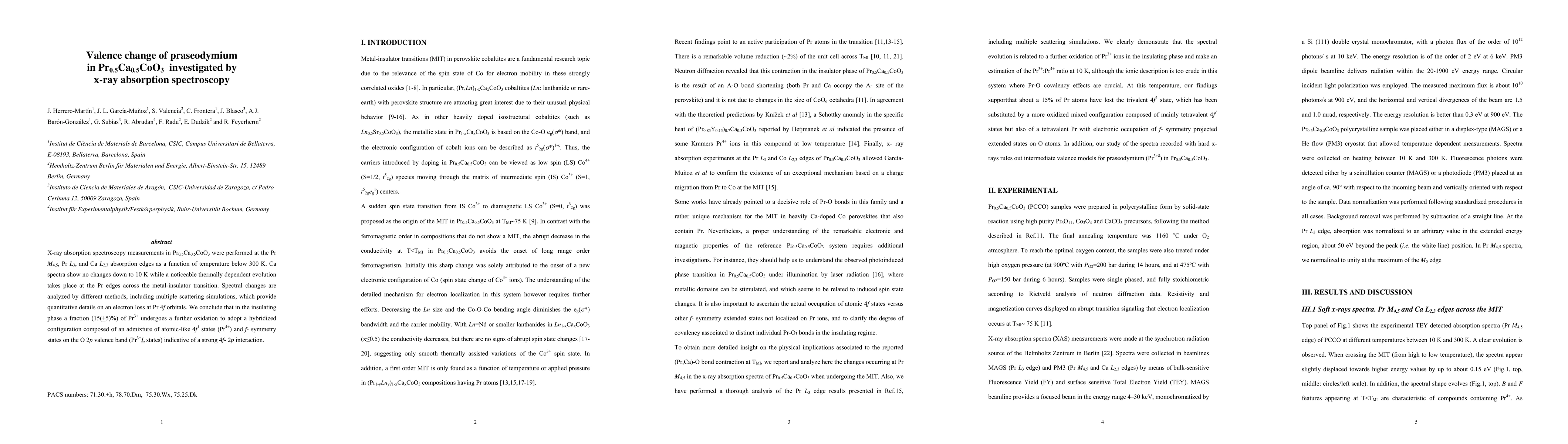 Researchers used x-ray absorption spectroscopy to study the valence change of praseodymium in Pr0.5Ca0.5CoO3 as temperature changes, finding that a fraction of praseodymium ions undergo further oxidation to form hybridized configurations.