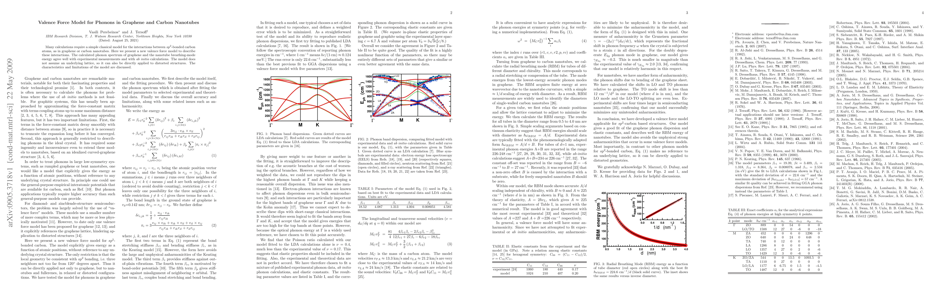 This paper introduces a new valence force model to describe the interactions between sp^2-bonded carbon atoms in graphene and carbon nanotubes. The model accurately predicts phonon spectra and nanotube breathing-mode energy, aligning well with experimental and ab initio data, and is applicable to distorted structures without assuming a lattice.
