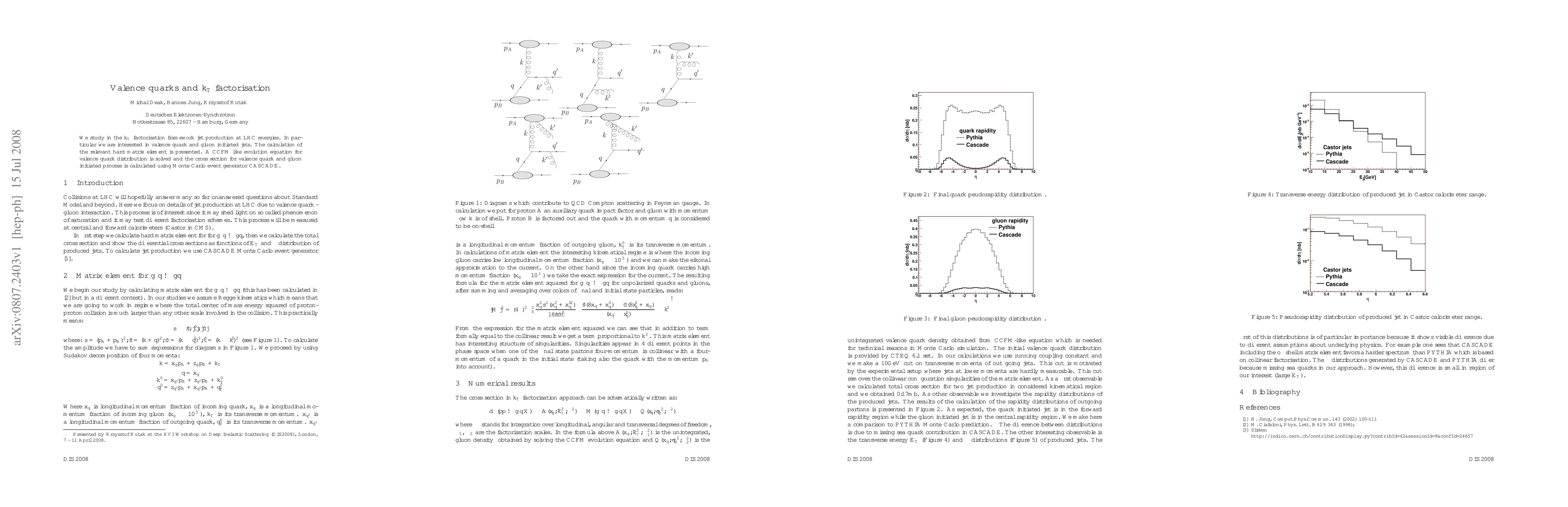 We study in the $k_T$ factorisation framework jet production at LHC energies. In particular we are interested in valence quark and gluon initiated jets. The calculation of the relevant hard matrix element is presented. A CCFM like evolutionequation for valence quark distribution is solved and the cross section for valence quark and gluon initiated process is calculated using Monte Carlo event generator CASCADE.