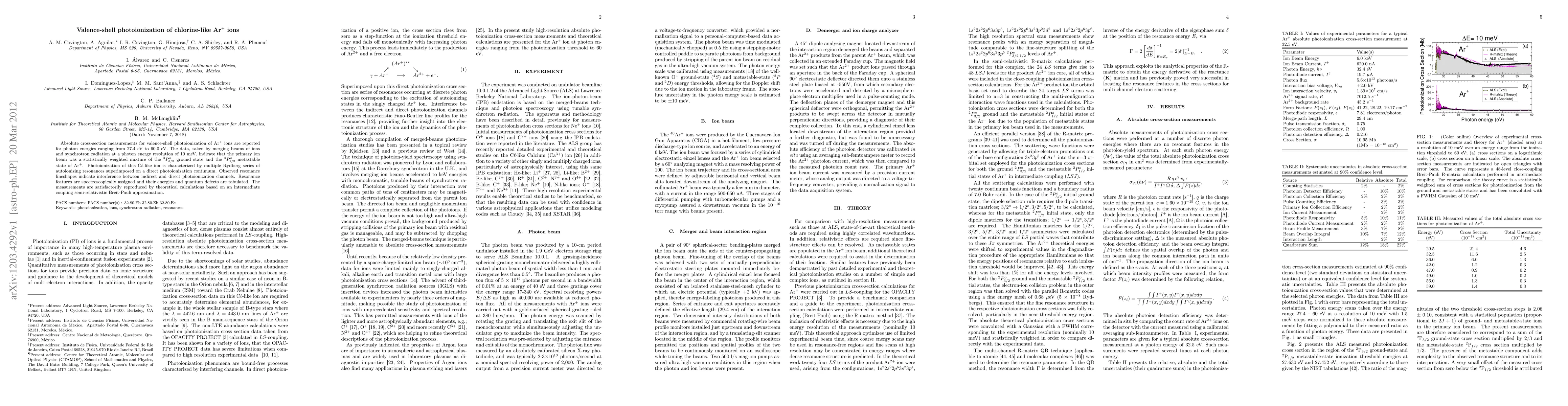 This paper reports absolute cross-section measurements for valence-shell photoionization of chlorine-like Ar$^{+}$ ions, revealing multiple Rydberg series and interference between ionization channels. Theoretical calculations match the observed resonance features and quantum defects.