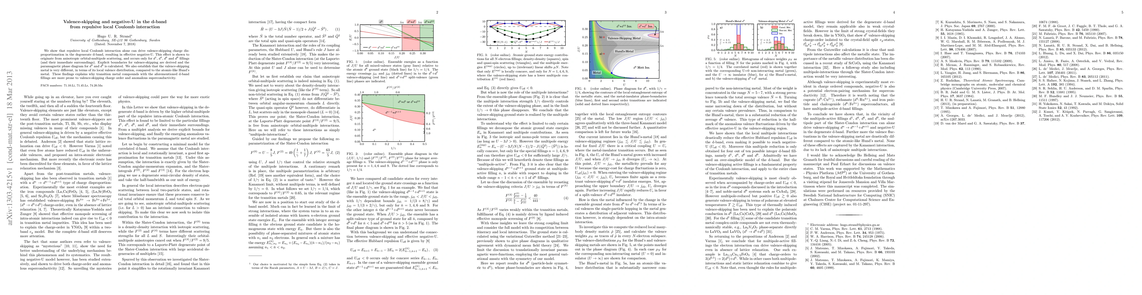 We show that repulsive local Coulomb interaction alone can drive valence-skipping charge disproportionation in the degenerate d-band, resulting in effective negative-U. This effect is shown to originate from anisotropic orbital-multipole scattering, and occurs only for $d^1$, $d^4$, $d^6$ and $d^9$ fillings (and their immediate surroundings). Explicit boundaries for valence-skipping are derived and the paramagnetic phase diagram for $d^4$ and $d^6$ is calculated. We also establish that the valence-skipping metal is very different, in terms of its local valence distribution, compared to the atomic-like Hund's metal. These findings explains why transition metal compounds with the aforementioned d-band fillings are more prone to valence-skipping charge order and anomalous superconductivity.