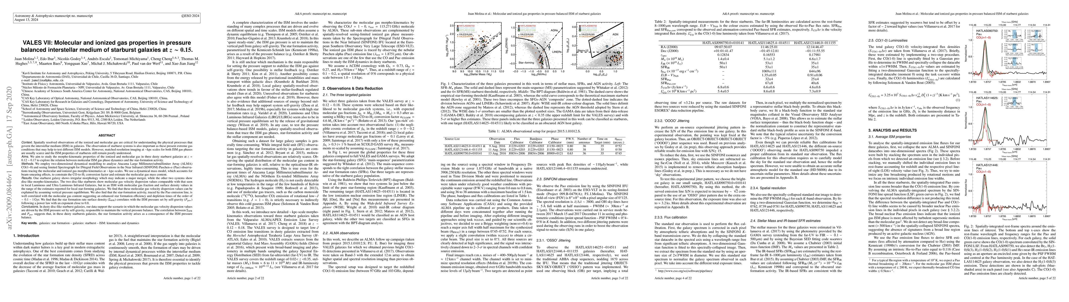 This study explores starburst galaxies at z ~ 0.15 using ALMA CO(1--0) and SINFONI Paschen-$\\