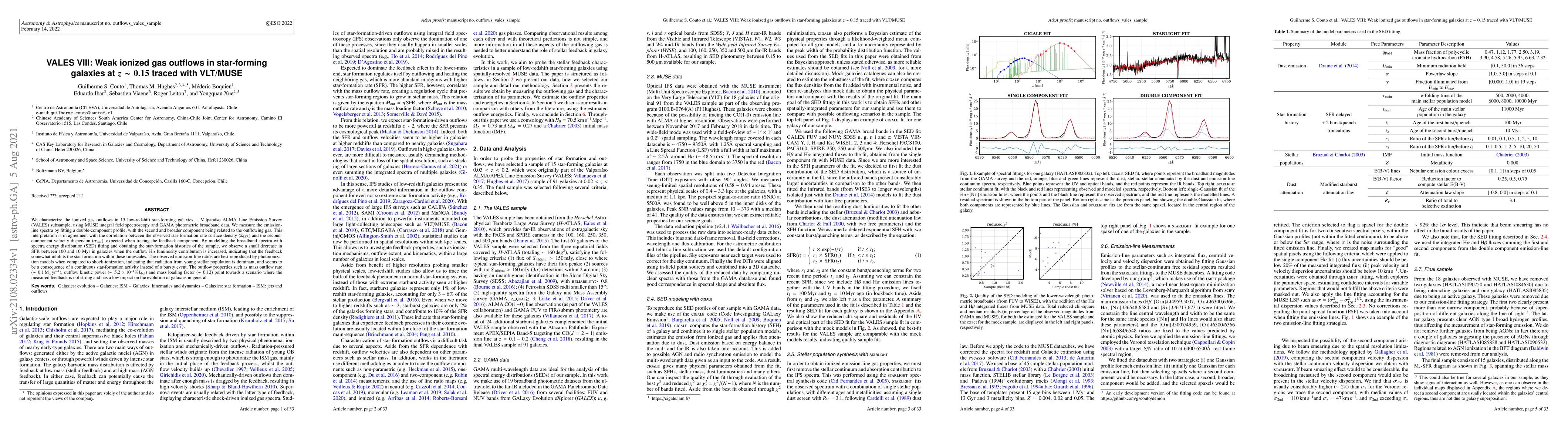 Detailed analysis of MUSE and GAMA data to characterize weak ionized gas outflows in star-forming galaxies at z ~ 0.15, providing insights into outflow properties and their impact on star formation.
