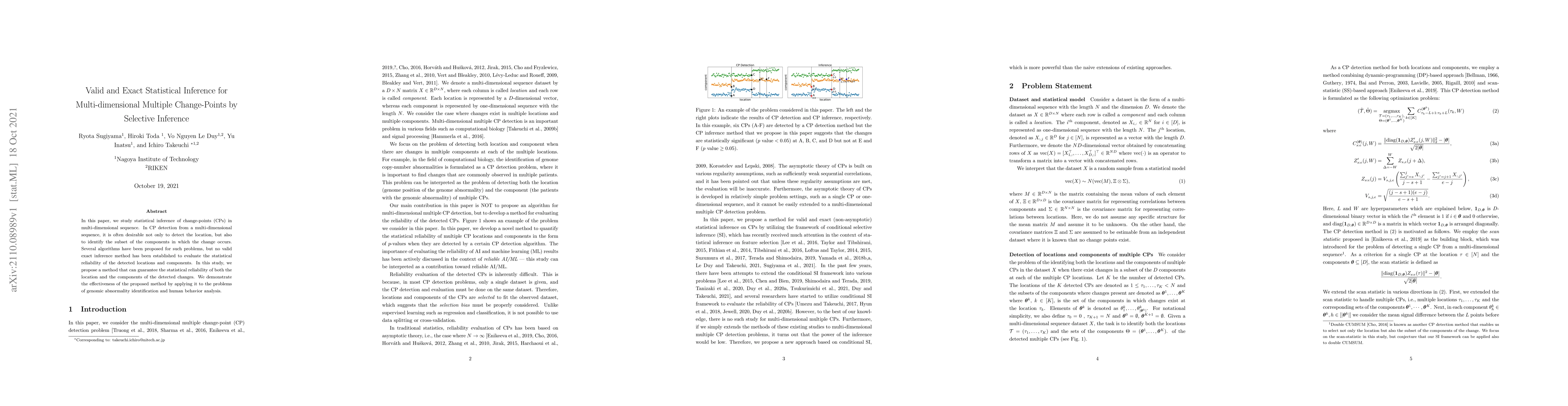 This paper proposes a novel method for valid and exact statistical inference of change-points in multi-dimensional sequences, ensuring reliable detection of both change locations and component subsets. The method's effectiveness is demonstrated through applications in genomic abnormality identification and human behavior analysis.