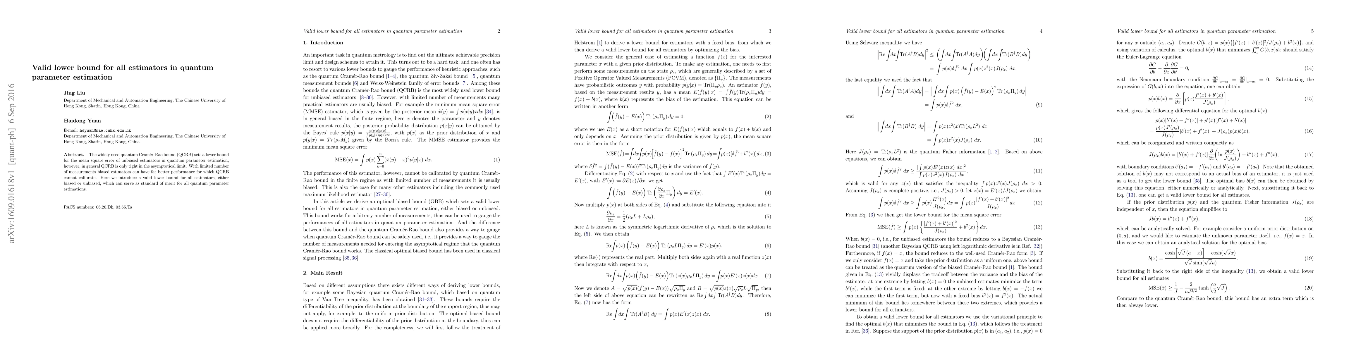 The widely used quantum Cramer-Rao bound (QCRB) sets a lower bound for the mean square error of unbiased estimators in quantum parameter estimation, however, in general QCRB is only tight in the asymptotical limit. With a limited number of measurements biased estimators can have a far better performance for which QCRB cannot calibrate. Here we introduce a valid lower bound for all estimators, either biased or unbiased, which can serve as standard of merit for all quantum parameter estimations.