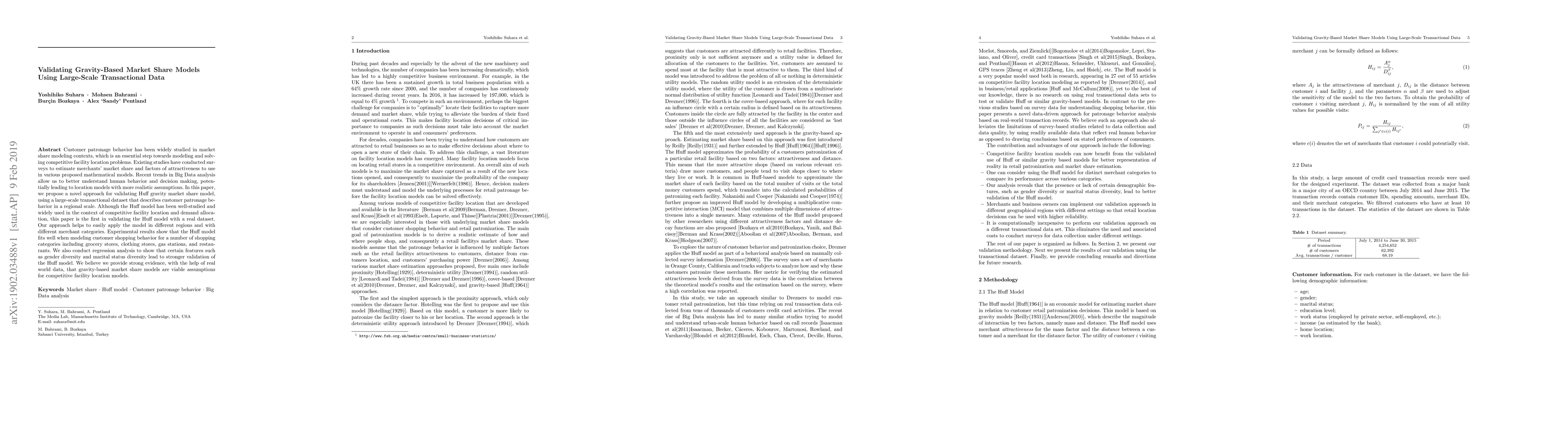 Customer patronage behavior has been widely studied in market share modeling contexts, which is an essential step towards modeling and solving competitive facility location problems. Existing studies have conducted surveys to estimate merchants' market share and factors of attractiveness to use in various proposed mathematical models. Recent trends in Big Data analysis allow us to better understand human behavior and decision making, potentially leading to location models with more realistic assumptions. In this paper, we propose a novel approach for validating Huff gravity market share model, using a large-scale transactional dataset that describes customer patronage behavior in a regional scale. Although the Huff model has been well-studied and widely used in the context of competitive facility location and demand allocation, this paper is the first in validating the Huff model with a real dataset. Our approach helps to easily apply the model in different regions and with different merchant categories. Experimental results show that the Huff model fits well when modeling customer shopping behavior for a number of shopping categories including grocery stores, clothing stores, gas stations, and restaurants. We also conduct regression analysis to show that certain features such as gender diversity and marital status diversity lead to stronger validation of the Huff model. We believe we provide strong evidence, with the help of real world data, that gravity-based market share models are viable assumptions for competitive facility location models.