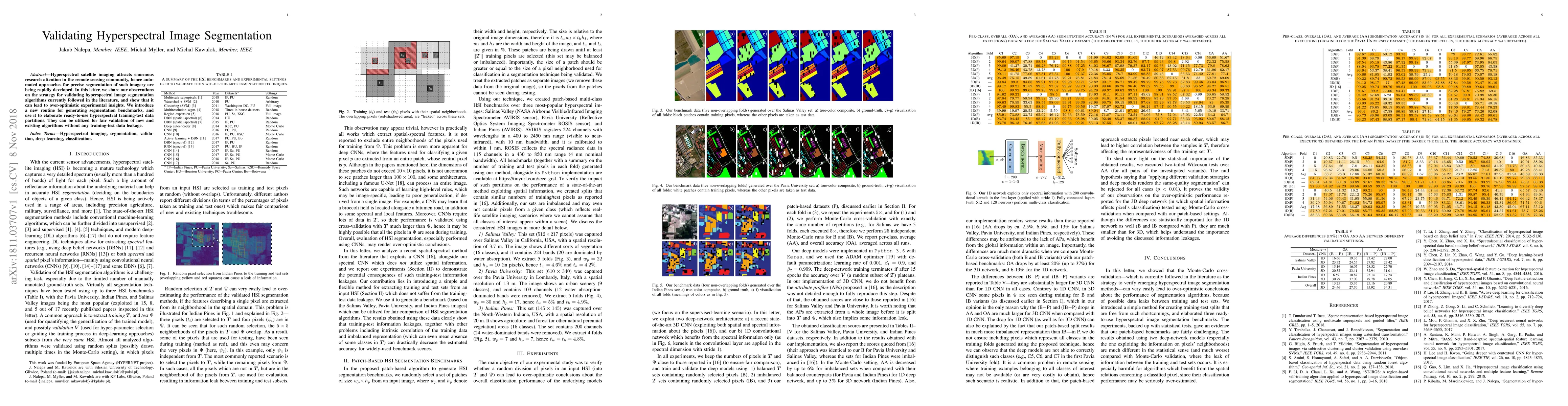 This paper critiques current methods for validating hyperspectral image segmentation algorithms, noting they often lead to overly optimistic results. The authors propose a new benchmark generation routine to create fair, leakage-free training-test data sets for evaluating segmentation algorithms.
