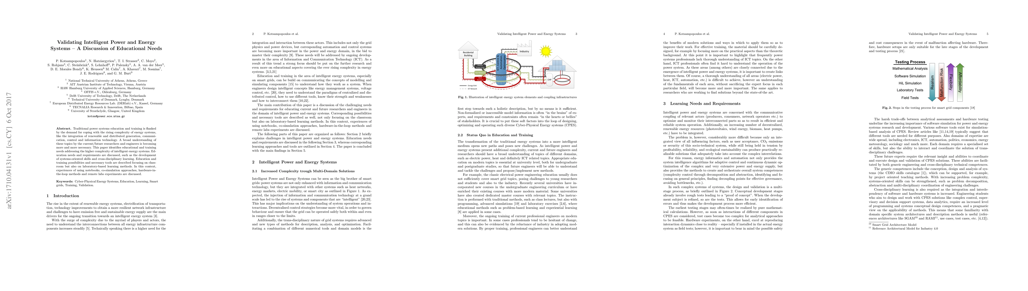 Traditional power systems education and training is flanked by the demand for coping with the rising complexity of energy systems, like the integration of renewable and distributed generation, communication, control and information technology. A broad understanding of these topics by the current/future researchers and engineers is becoming more and more necessary. This paper identifies educational and training needs addressing the higher complexity of intelligent energy systems. Education needs and requirements are discussed, such as the development of systems-oriented skills and cross-disciplinary learning. Education and training possibilities and necessary tools are described focusing on classroom but also on laboratory-based learning methods. In this context, experiences of using notebooks, co-simulation approaches, hardware-in-the-loop methods and remote labs experiments are discussed.
