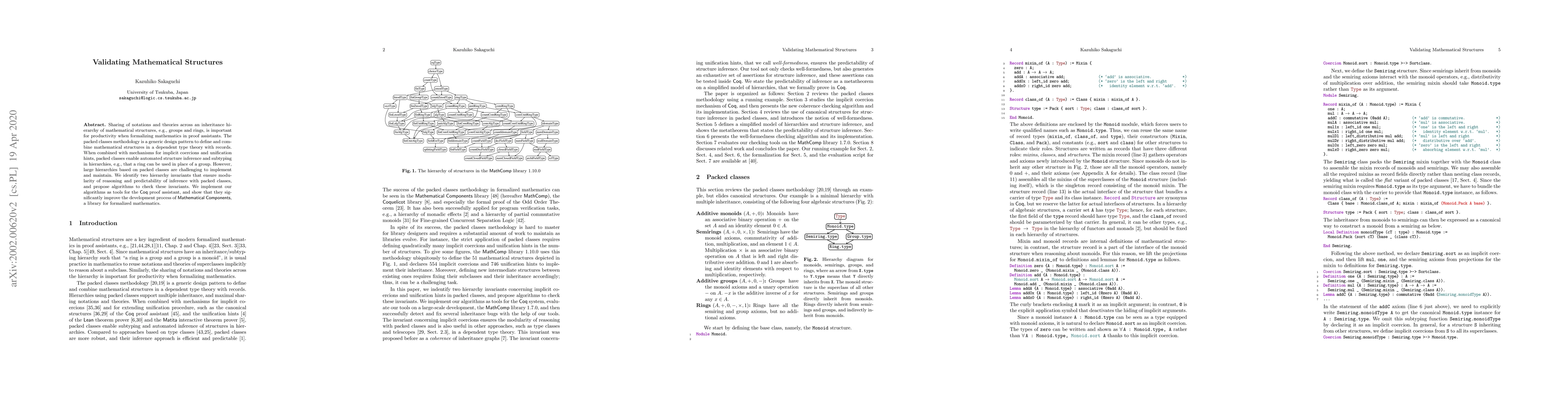 This research paper validates a methodology for implementing mathematical structures in proof assistants, improving productivity and modularity of reasoning, using algorithms to check hierarchy invariants.