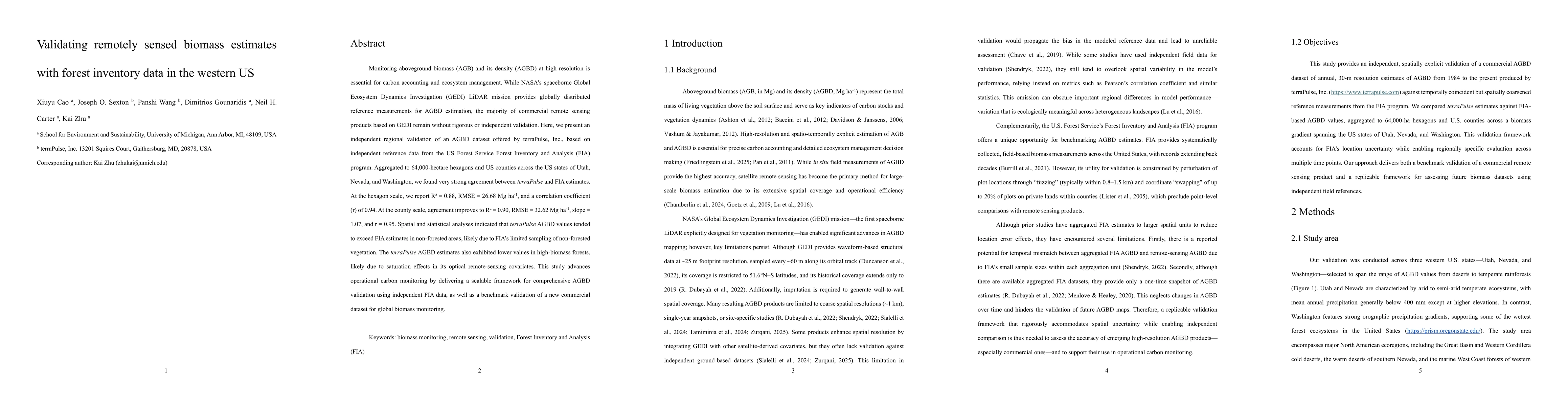 The research presents a methodology for independent validation of commercial biomass datasets using forest inventory data, providing a benchmark for global biomass monitoring efforts.