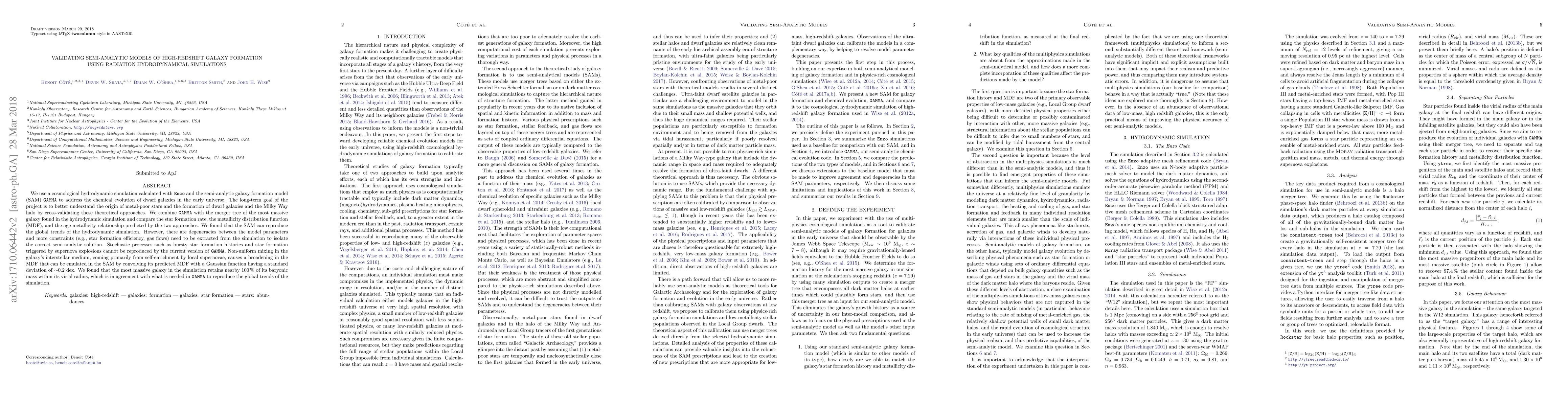 This paper validates a semi-analytic model (GAMMA) against radiation hydrodynamical simulations (Enzo) to study dwarf galaxy formation in the early universe. The study finds that the semi-analytic model can reproduce global trends but requires additional constraints to address model degeneracies and stochastic processes.