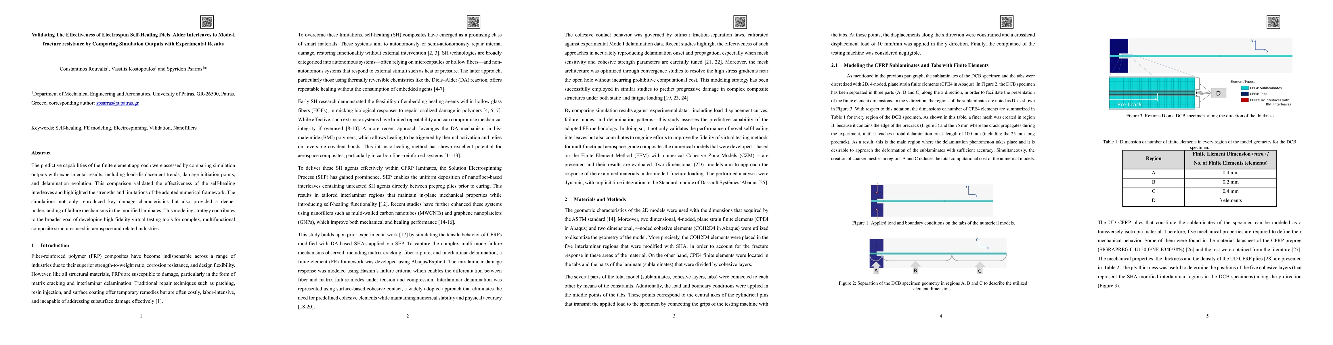 The study validated electrospun self-healing interleaves' effectiveness in improving Mode I fracture resistance through a comparison of simulation outputs with experimental results, providing valuable insights for developing high-fidelity virtual testing tools.