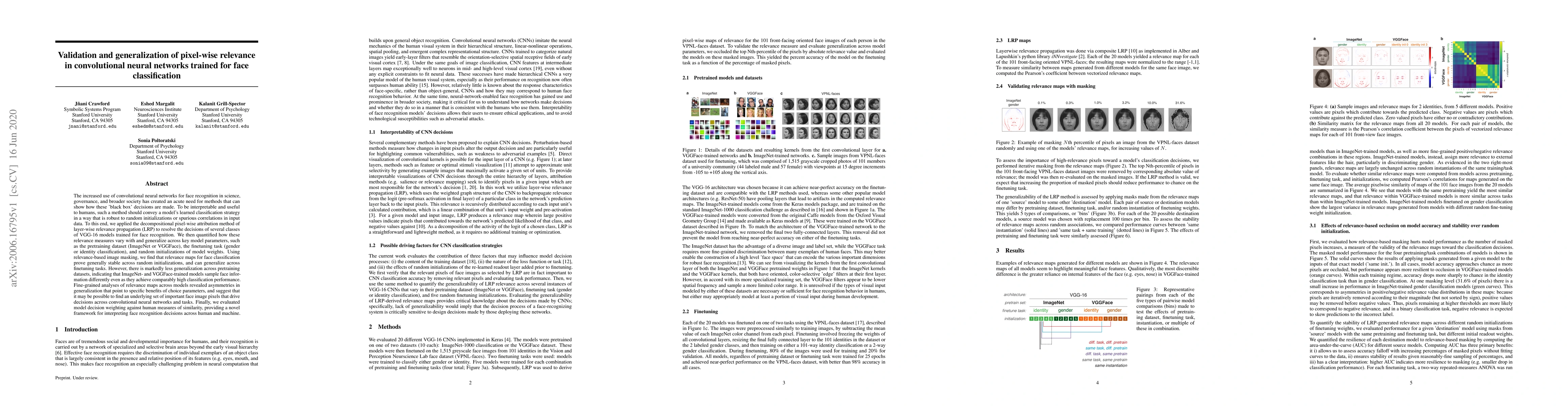 Researchers used a technique called LRP to analyze how convolutional neural networks make decisions in face classification tasks, finding that relevance maps can generalize across different model parameters and finetuning tasks, but not pretraining datasets.