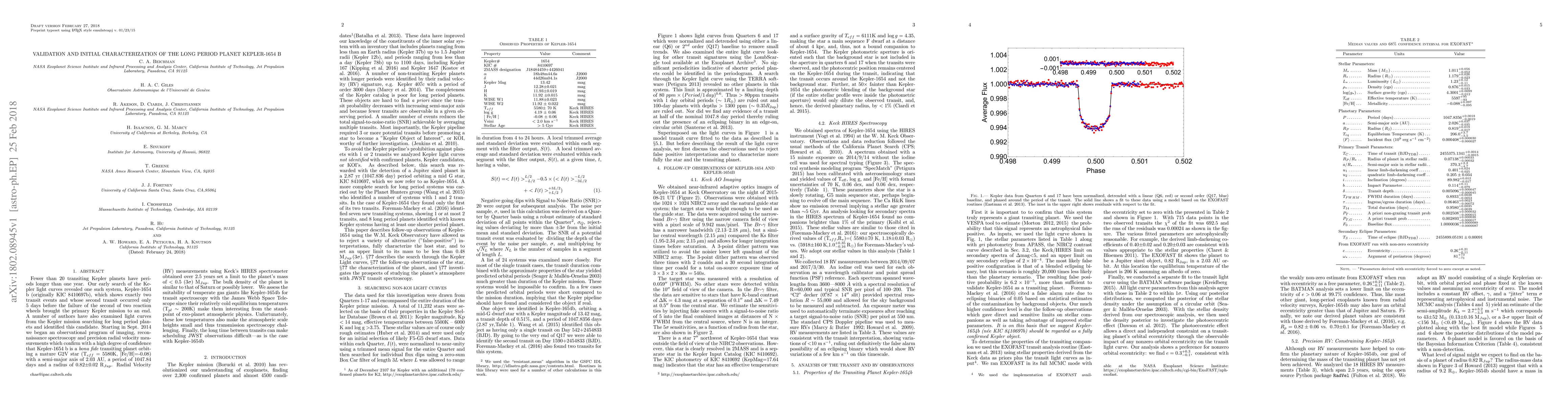 This paper validates the long-period transiting planet Kepler-1654 b, confirming it orbits a G2V star with a period of 1047.84 days. The planet's radius and mass constraints suggest it is a low-density gas giant, similar to Saturn, and it is considered a candidate for future transit spectroscopy studies with the James Webb Space Telescope despite challenges due to its low equilibrium temperature and infrequent transits.