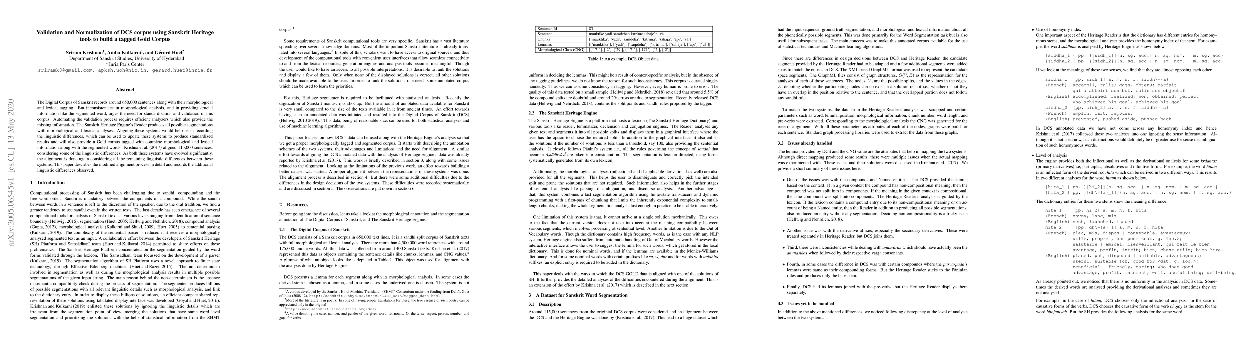 This paper details the validation and normalization of the Digital Corpus of Sanskrit (DCS) using the Sanskrit Heritage Engine to create a standardized, tagged Gold Corpus, addressing inconsistencies in morphological analysis and providing complete segmentation and tagging information. The study builds on previous work by Krishna et al. (2017) to align and update the corpus with additional linguistic differences.