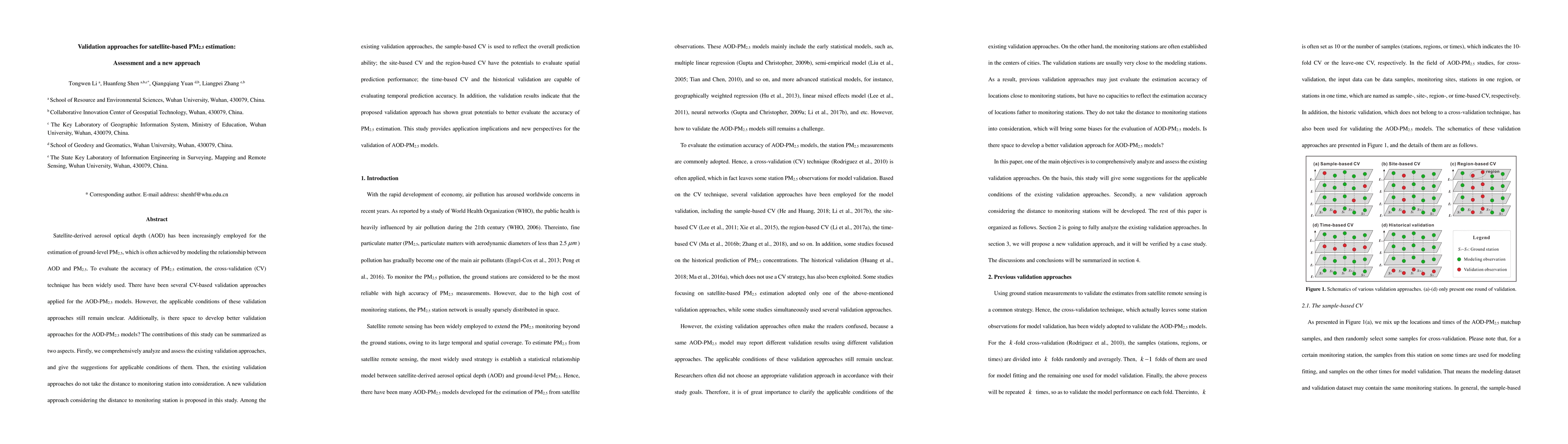 This study evaluates existing validation approaches for satellite-based PM2.5 estimation and proposes a new approach that considers the distance to monitoring stations, improving the accuracy of PM2.5 predictions.