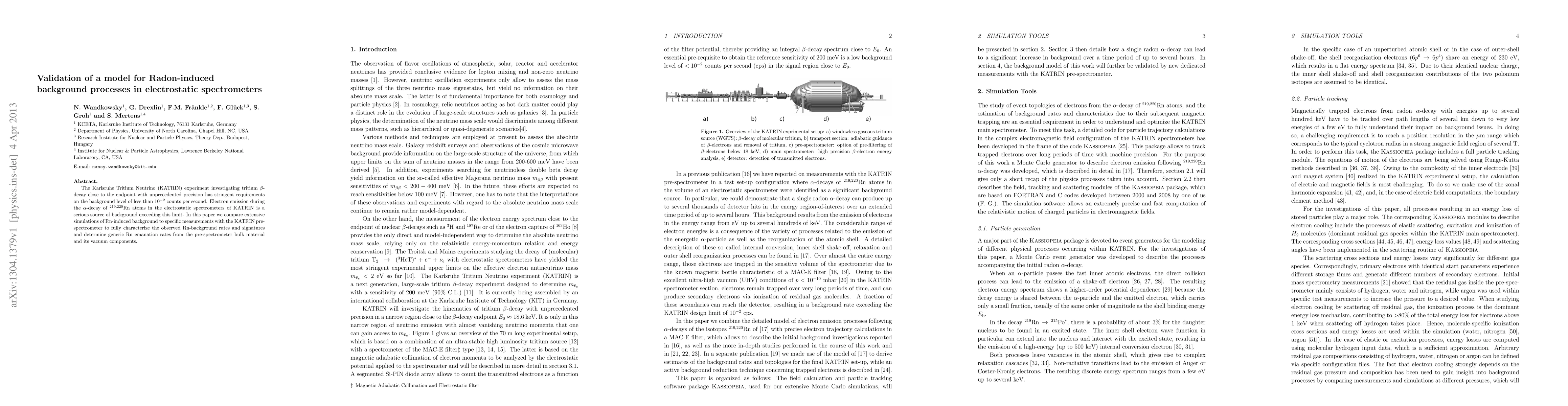 This paper validates a model for radon-induced background processes in electrostatic spectrometers, comparing simulation results with measurements from the KATRIN pre-spectrometer to characterize radon background rates and signatures, and determine emanation rates from spectrometer materials.