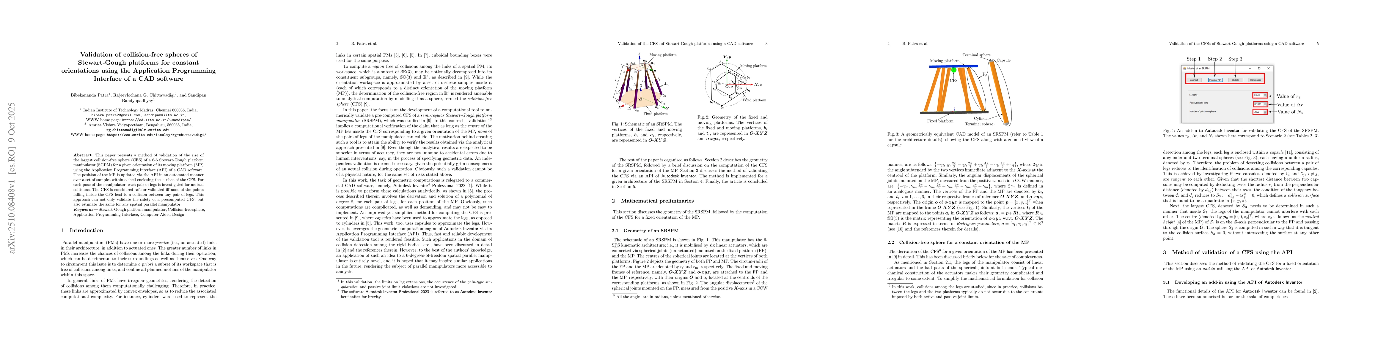 The novelty of this work is the integration of CAD software APIs with geometric modeling and collision detection to provide an automated, scalable solution for validating collision-free spheres in parallel manipulators.