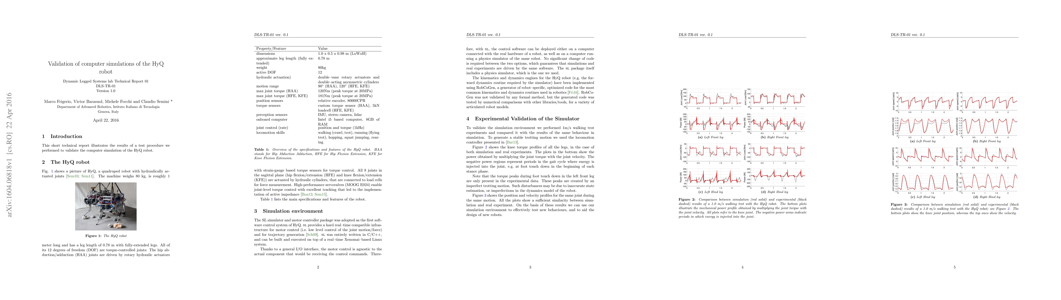 This short technical report illustrates the results of a test procedure we performed to validate the computer simulation of the HyQ robot.