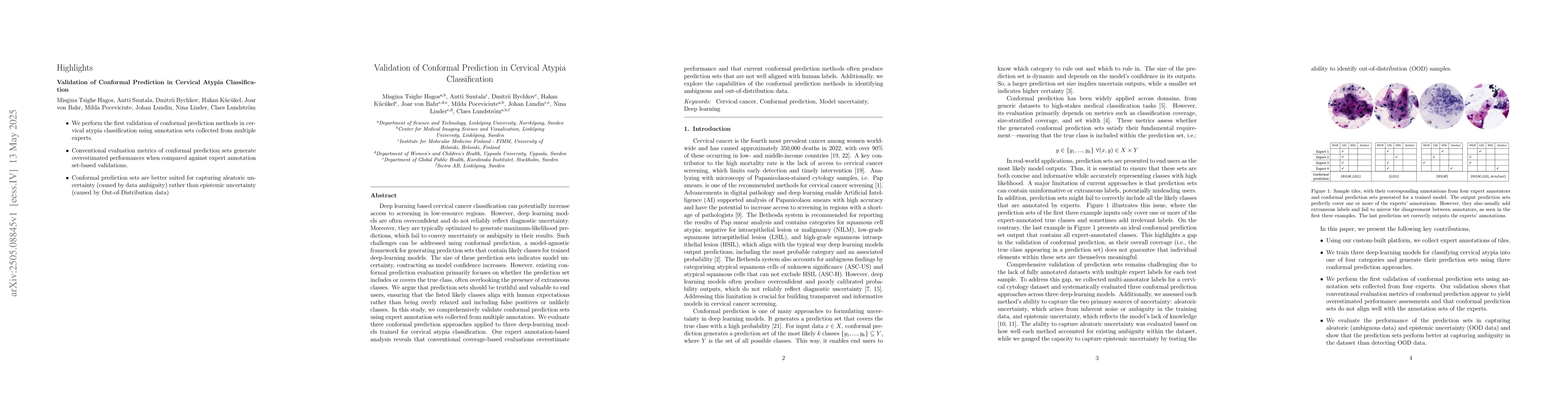 The paper presents an in-depth validation of conformal prediction methods for deep learning models in cervical atypia classification, emphasizing the importance of truthful and valuable prediction sets for end-users.