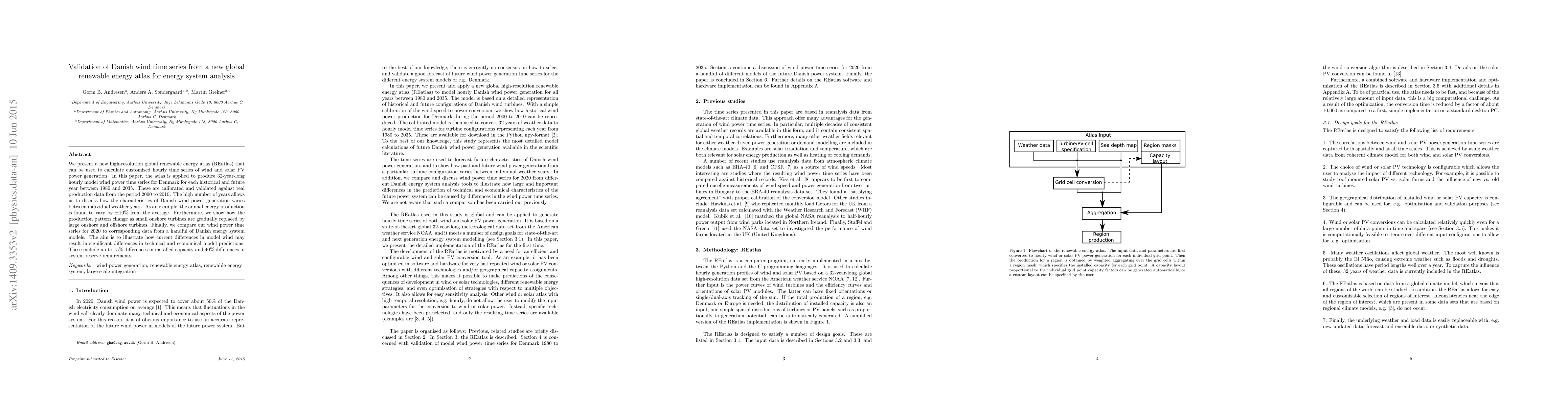 This paper validates a new high-resolution global renewable energy atlas for generating wind power time series, applying it to produce and calibrate 32-year wind data for Denmark. The study highlights variations in wind power generation and the impact of turbine changes, revealing significant differences in model predictions for technical and economic outcomes.