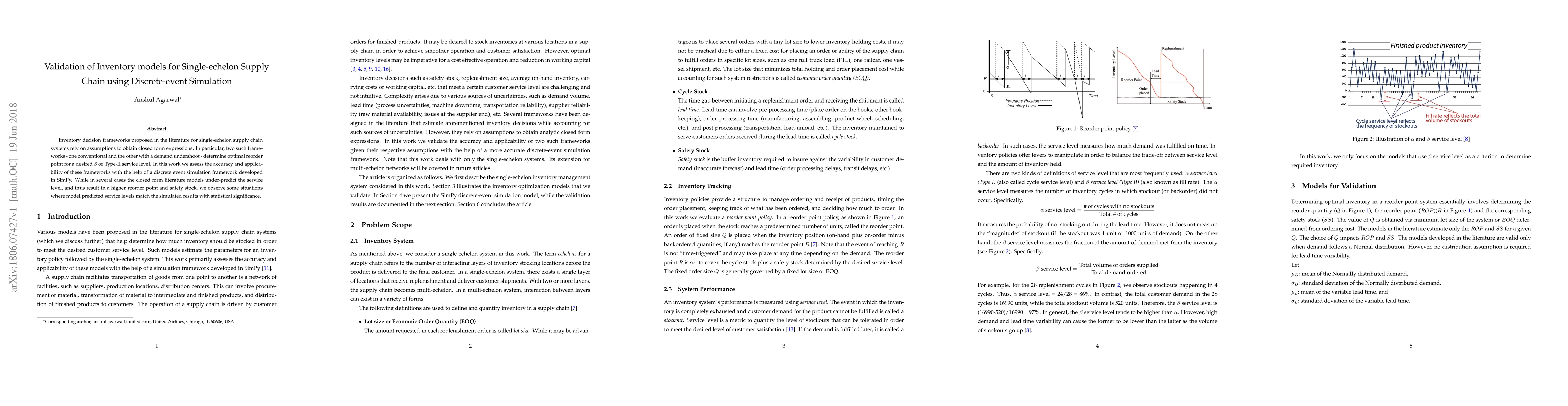 Inventory decision frameworks proposed in the literature for single-echelon supply chain systems rely on assumptions to obtain closed form expressions. In particular, two such frameworks - one conventional and the other with a demand undershoot - determine optimal reorder point for a desired $\beta$ or Type-II service level. In this work we assess the accuracy and applicability of these frameworks with the help of a discrete event simulation framework developed in SimPy. While in several cases the closed form literature models under-predict the service level, and thus result in a higher reorder point and safety stock, we observe some situations where model predicted service levels match the simulated results with statistical significance.