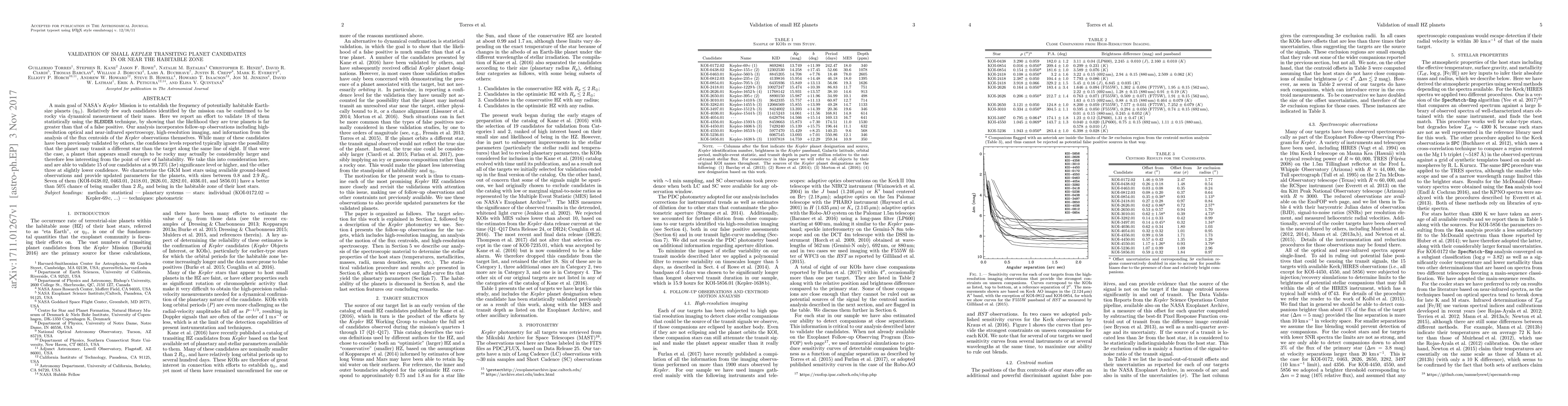 This study statistically validates 18 small Kepler transiting planet candidates using the BLENDER technique, confirming 15 at a 99.73% confidence level. The analysis considers the possibility of false positives, providing updated parameters for planets with sizes between 0.8 and 2.9 Earth radii, seven of which have a high chance of being within the habitable zone.