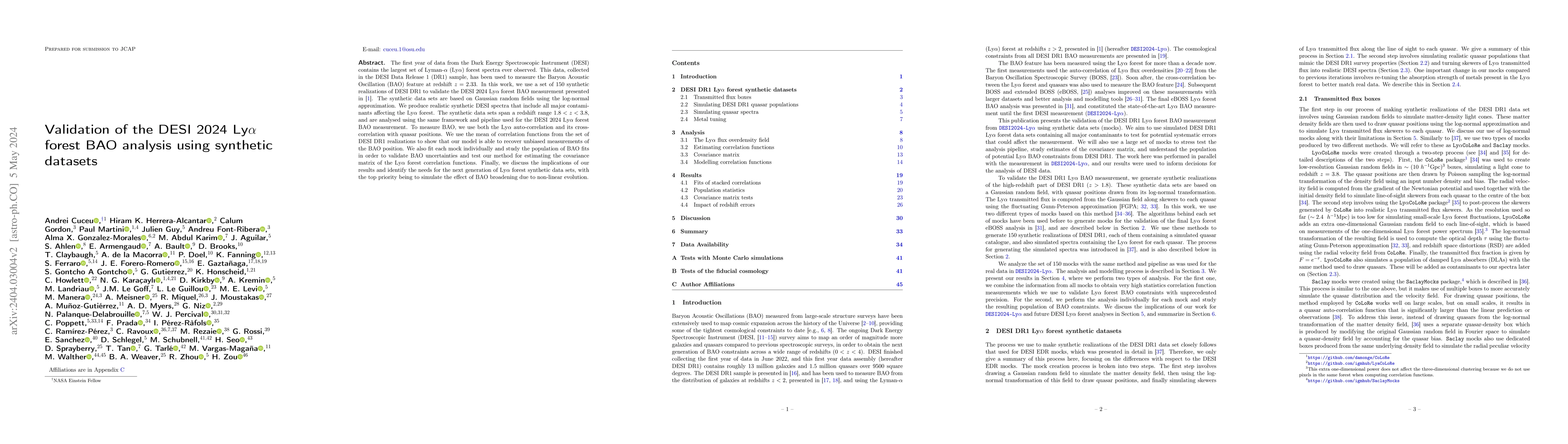 to validate the DESI 2024 Ly$\alpha$ forest BAO measurement. The synthetic data