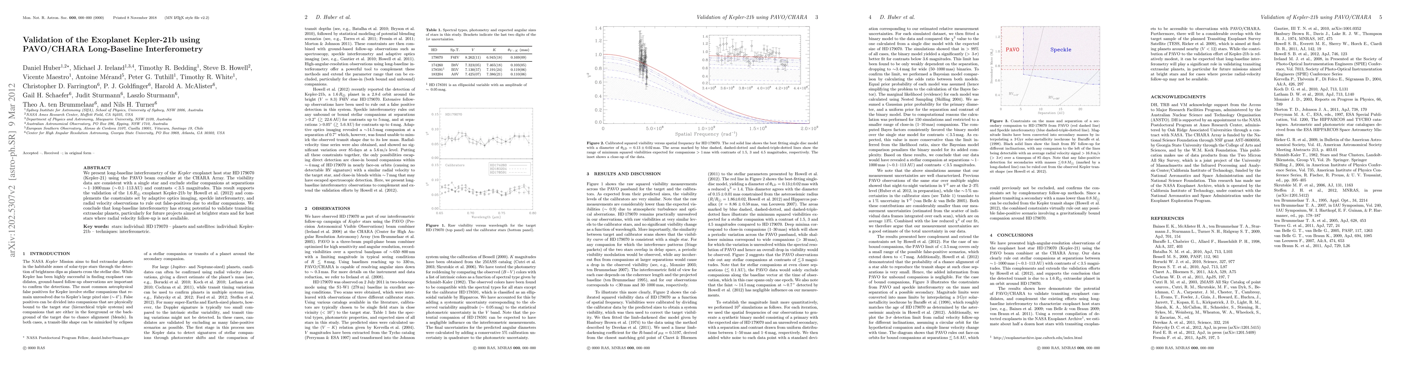 This study validates the exoplanet Kepler-21b using long-baseline interferometry at the CHARA Array, confirming the absence of stellar companions and supporting its existence. The results enhance the reliability of exoplanet validation methods, especially for future projects targeting brighter stars.