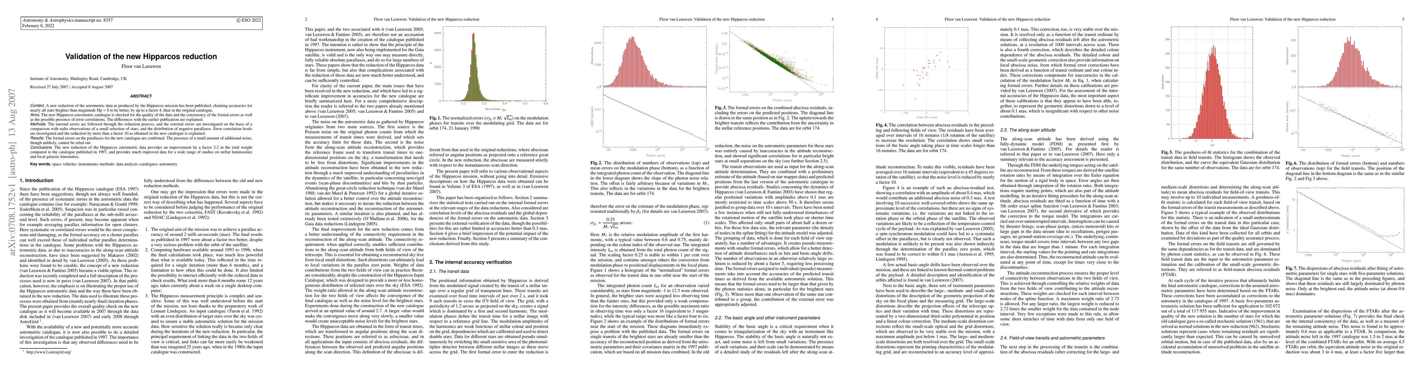 The new Hipparcos astrometric catalogue shows significant improvements in accuracy, with formal errors on parallaxes confirmed and a reduction in error by a factor of 4 compared to the original catalogue, enhancing data quality for stellar studies and galactic kinematics. Despite minor additional noise, the overall reduction is validated and deemed superior.