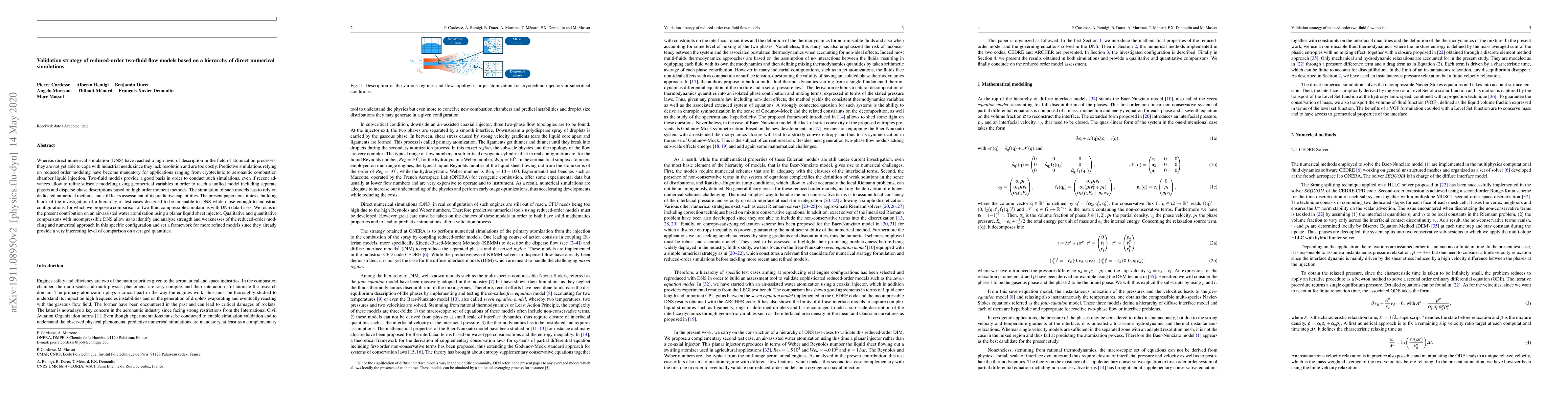 Whereas direct numerical simulation (DNS) have reached a high level of description in the field of atomization processes, they are not yet able to cope with industrial needs since they lack resolution and are too costly. Predictive simulations relying on reduced order modeling have become mandatory for applications ranging from cryotechnic to aeronautic combustion chamber liquid injection. Two-fluid models provide a good basis in order to conduct such simulations, even if recent advances allow to refine subscale modeling using geometrical variables in order to reach a unified model including separate phases and disperse phase descriptions based on high order moment methods. The simulation of such models has to rely on dedicated numerical methods and still lacks assessment of its predictive capabilities. The present paper constitutes a building block of the investigation of a hierarchy of test-cases designed to be amenable to DNS while close enough to industrial configurations, for which we propose a comparison of two-fluid compressible simulations with DNS data-bases. We focus in the present contribution on an air-assisted water atomization using a planar liquid sheet injector. Qualitative and quantitative comparisons with incompressible DNS allow us to identify and analyze strength and weaknesses of the reduced-order modeling and numerical approach in this specific configuration and set a framework for more refined models since they already provide a very interesting level of comparison on averaged quantities.