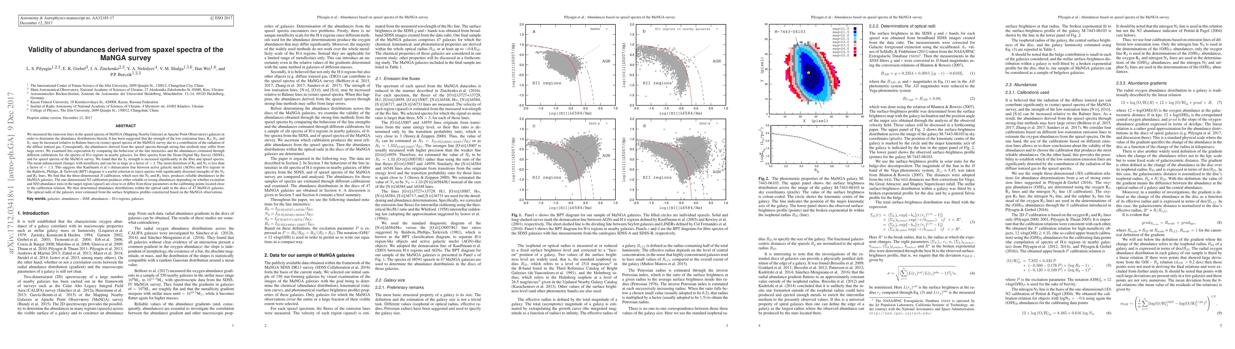 This study investigates the validity of abundance measurements from MaNGA galaxy spectra, finding significant S_2 line intensity increases in fiber and spaxel spectra, potentially affecting abundance estimates. The research concludes that the 3D R calibration using N_2 and R_2 lines yields reliable abundances, while the 1D N2 calibration's accuracy depends on target region excitation and N/O ratio similarity to calibration points.