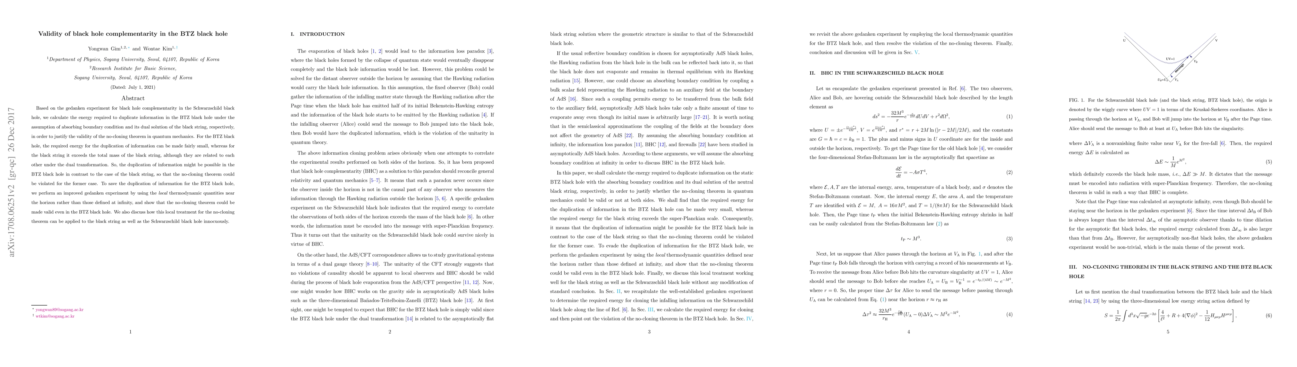 Based on the gedanken experiment for black hole complementarity in the Schwarzschild black hole, we calculate the energy required to duplicate information in the BTZ black hole under the assumption of absorbing boundary condition and its dual solution of the black string, respectively, in order to justify the validity of the no-cloning theorem in quantum mechanics. For the BTZ black hole, the required energy for the duplication of information can be made fairly small, whereas for the black string it exceeds the total mass of the black string, although they are related to each other under the dual transformation. So, the duplication of information might be possible in the BTZ black hole in contrast to the case of the black string, so that the no-cloning theorem could be violated for the former case. To save the duplication of information for the BTZ black hole, we perform an improved gedanken experiment by using the local thermodynamic quantities near the horizon rather than those defined at infinity, and show that the no-cloning theorem could be made valid even in the BTZ black hole. We also discuss how this local treatment for the no-cloning theorem can be applied to the black string as well as the Schwarzschild black hole innocuously.