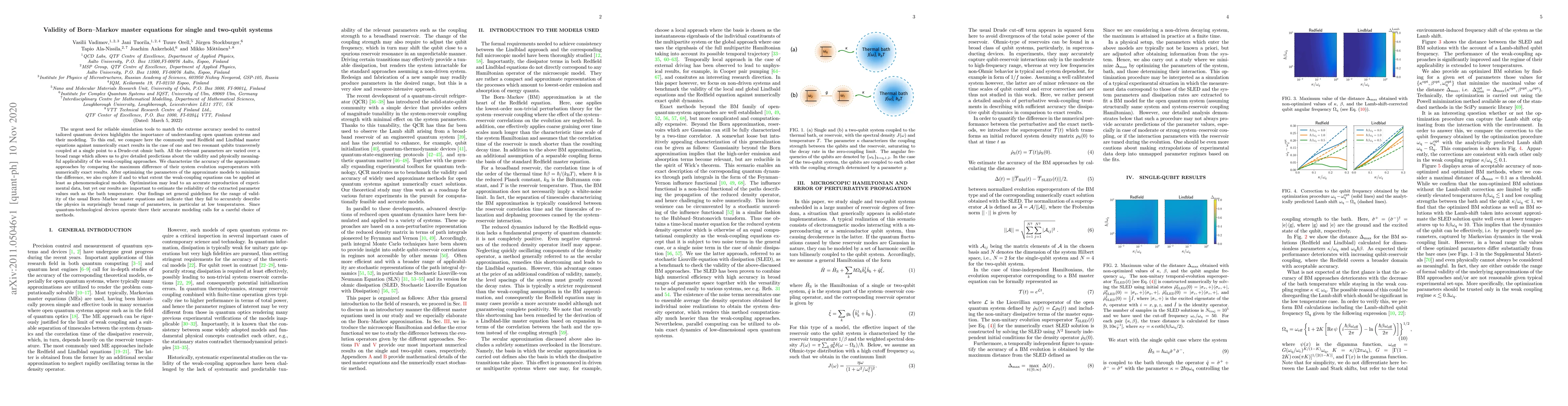 The urgent need for reliable simulation tools to match the extreme accuracy needed to control tailored quantum devices highlights the importance of understanding open quantum systems and their modeling. To this end, we compare here the commonly used Redfield and Lindblad master equations against numerically exact results in the case of one and two resonant qubits transversely coupled at a single point to a Drude-cut ohmic bath. All the relevant parameters are varied over a broad range which allows us to give detailed predictions about the validity and physically meaningful applicability of the weak-coupling approaches. We characterize the accuracy of the approximate approaches by comparing the maximum difference of their system evolution superoperators with numerically exact results. After optimizing the parameters of the approximate models to minimize the difference, we also explore if and to what extent the weak-coupling equations can be applied at least as phenomenological models. Optimization may lead to an accurate reproduction of experimental data, but yet our results are important to estimate the reliability of the extracted parameter values such as the bath temperature. Our findings set general guidelines for the range of validity of the usual Born-Markov master equations and indicate that they fail to accurately describe the physics in surprisingly broad range of parameters, in particular at low temperatures. Since quantum-technological devices operate there their accurate modeling calls for a careful choice of methods.